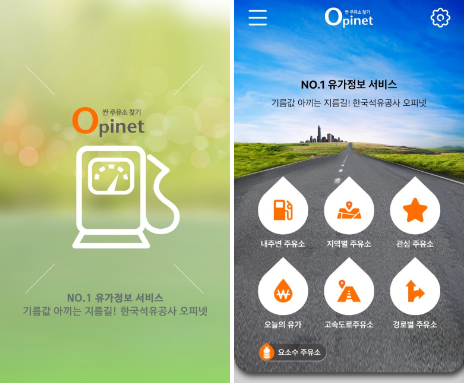 스마트폰에서 앱스토어의 오피넷을 검색하여 설치합니다.